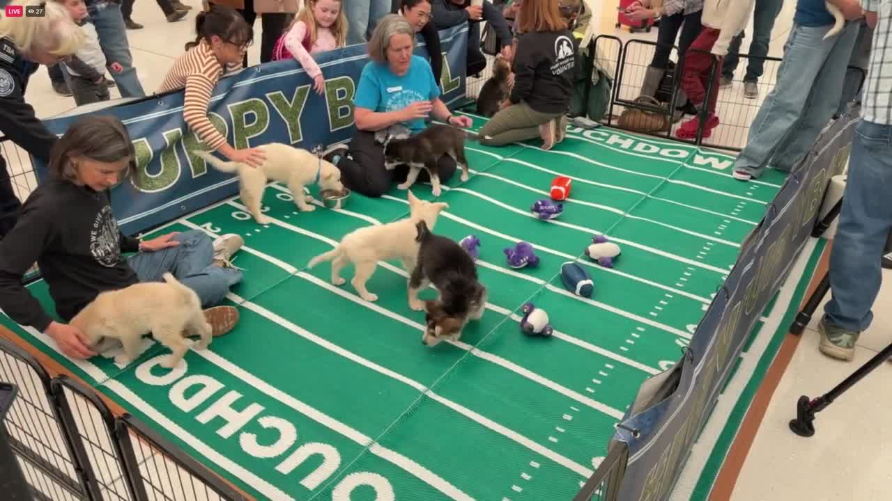 The Puppy Bowl streamed on the airport's Facebook page: