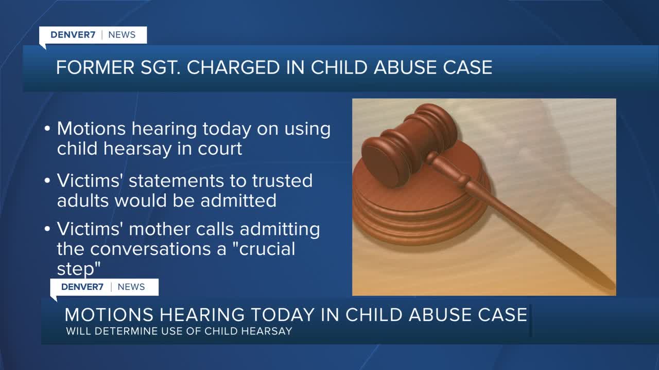 DOUGLAS COUNTY, Colo. — A motions hearing is slated for Thursday to decide whether or not to admit child hearsay in a child abuse case against a former Aurora police sergeant.