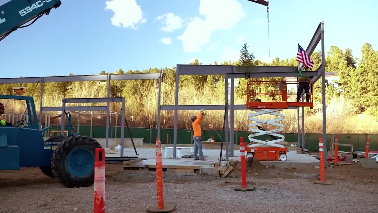 NEDERLAND, Colo. — The community of Nederland gathered Thursday afternoon to sign well wishes on the final beam for a new childcare facility, marking a major milestone in addressing the town's desperate need for early childhood care.