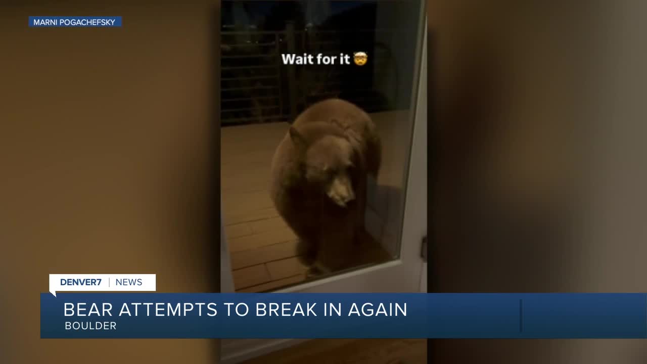 BOULDER, Colo. — A hungry black bear that broke into a Boulder home twice in one night this week returned to the same property again Thursday, according to the homeowner.