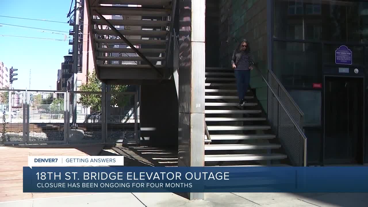 DENVER — Residents are expressing their concerns about an elevator outage in downtown Denver on the 18th Street pedestrian bridge, also known as the Union Gateway Bridge.