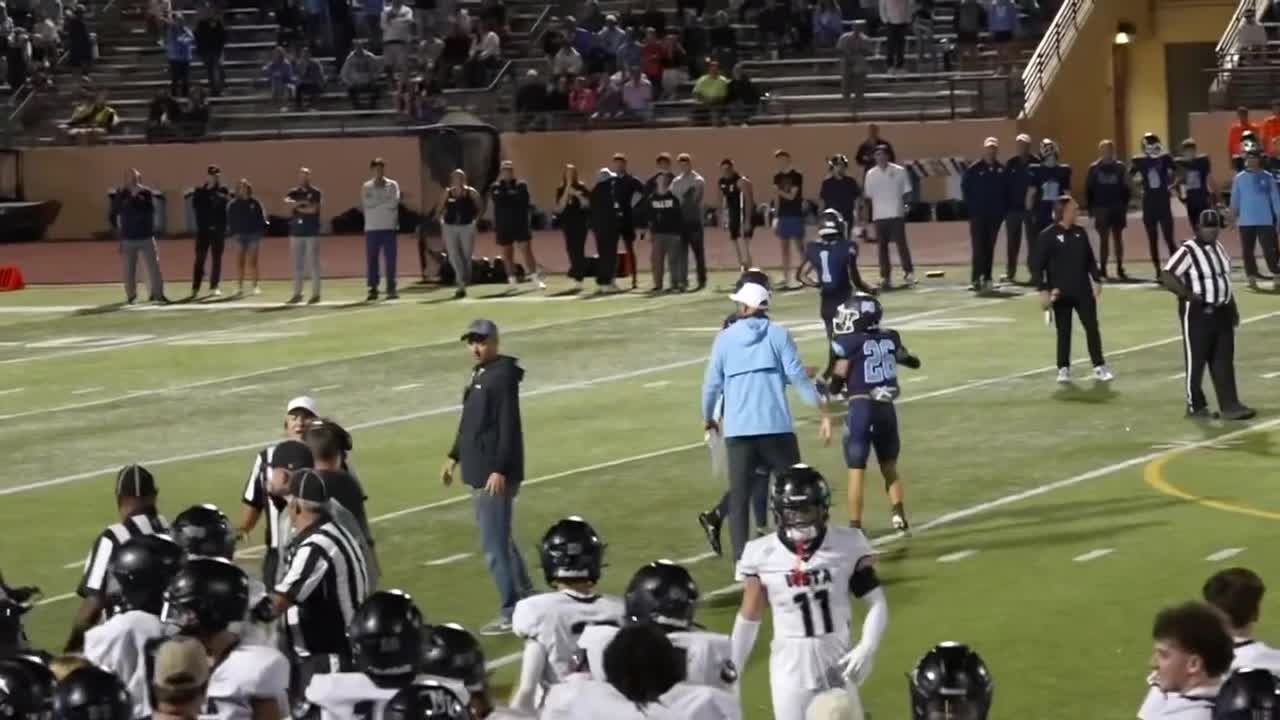 A chaotic scene ensued, in which several Valor players were mixed in with a crowd of Mountain Vista players. The broadcast footage doesn’t appear to show the physical altercation in question.
