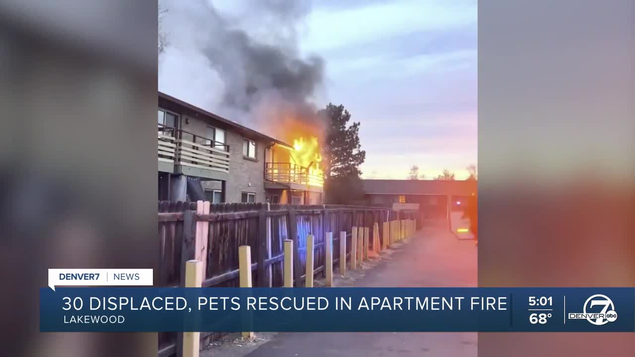 LAKEWOOD, Colo. – Around 30 people were displaced after an apartment fire broke out Saturday morning in Lakewood.