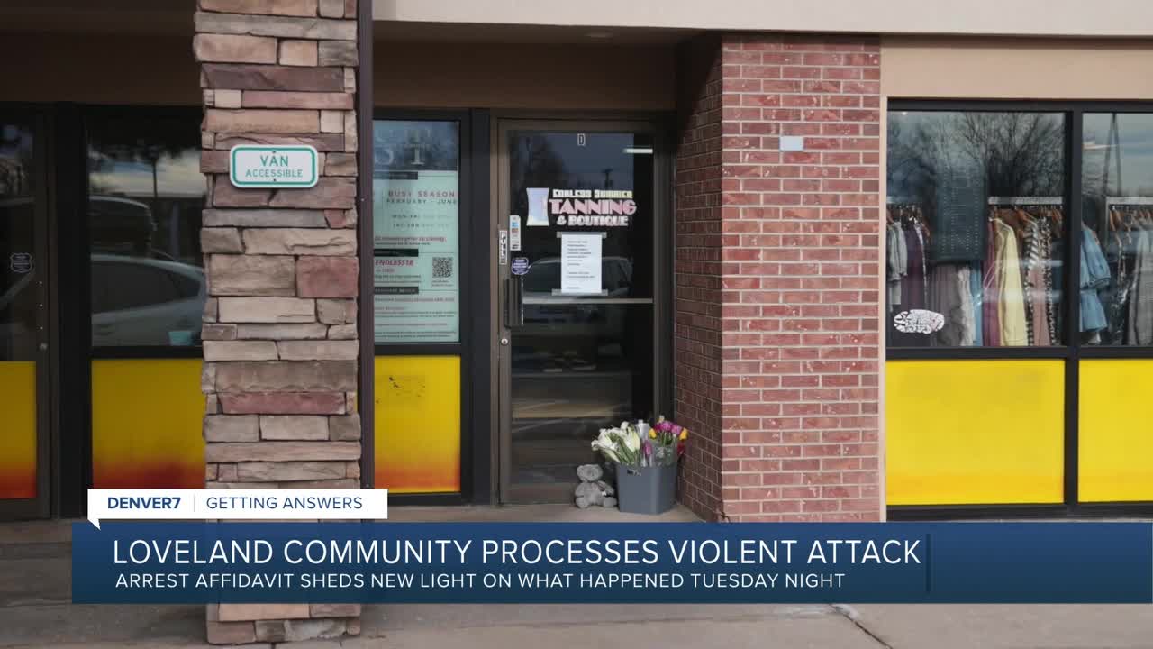 LOVELAND, Colo. — A Loveland tanning salon employee was able to stab the suspect with his own knife to defend herself and a customer during an unprovoked attack that left her with life-threatening injuries, according to an arrest warrant affidavit obtained by Denver7 Thursday.