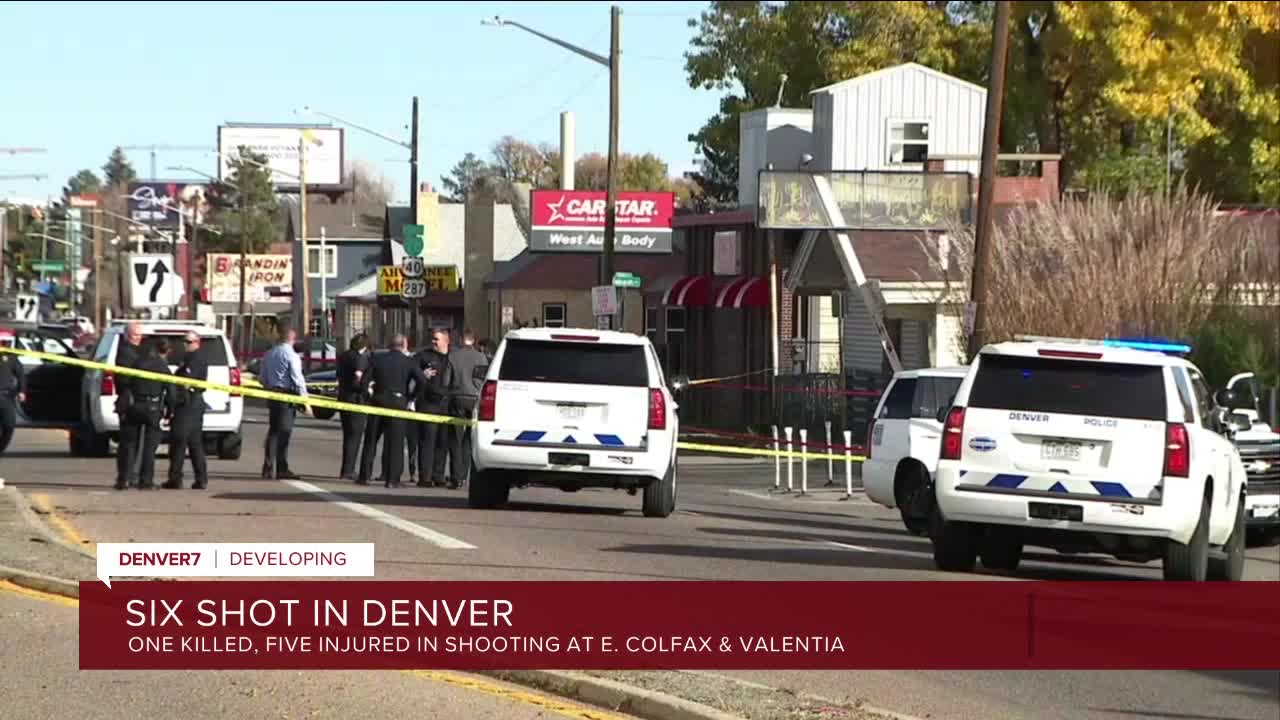 DENVER — Police in Denver are investigating a shooting that left one person dead and wounded five others on the eastern side of the city Tuesday afternoon.