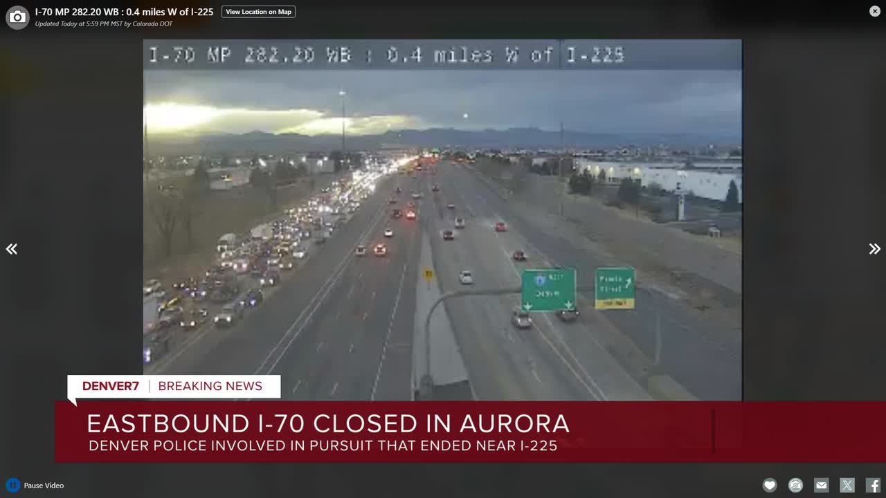 The eastbound lanes of Interstate 70 near Aurora reopened around 6:40 after being closed earlier in the evening due to police activity; Denver Police say a pursuit ended there.