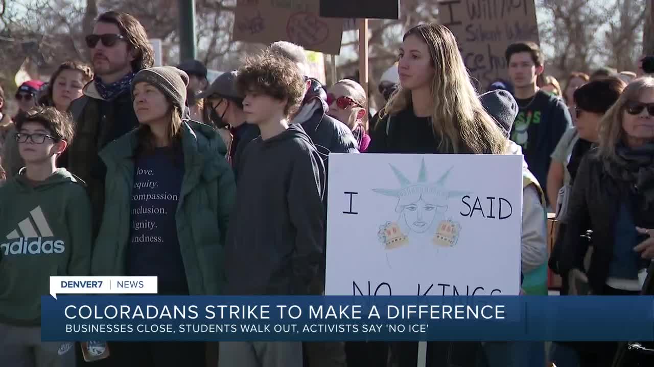 DENVER, Colo. — From the Capitol steps to downtown Denver, the bakery counter and school campuses, Coloradans joined the call for action by taking a stand in a nationwide strike against Immigration and Customs Enforcement operations.