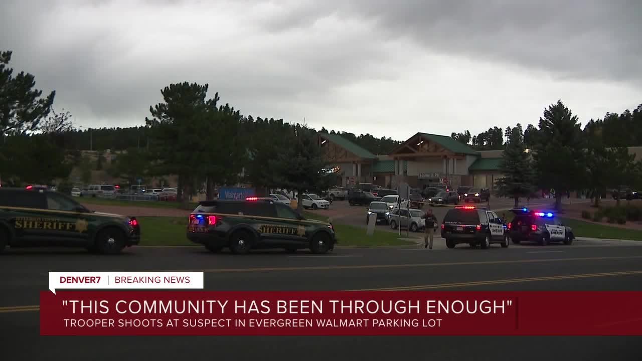 JEFFERSON COUNTY, Colo. — A law enforcement shooting in the parking lot of an Evergreen Walmart ended in a crash on Interstate 70 that shut down all eastbound lanes at Lookout Mountain.