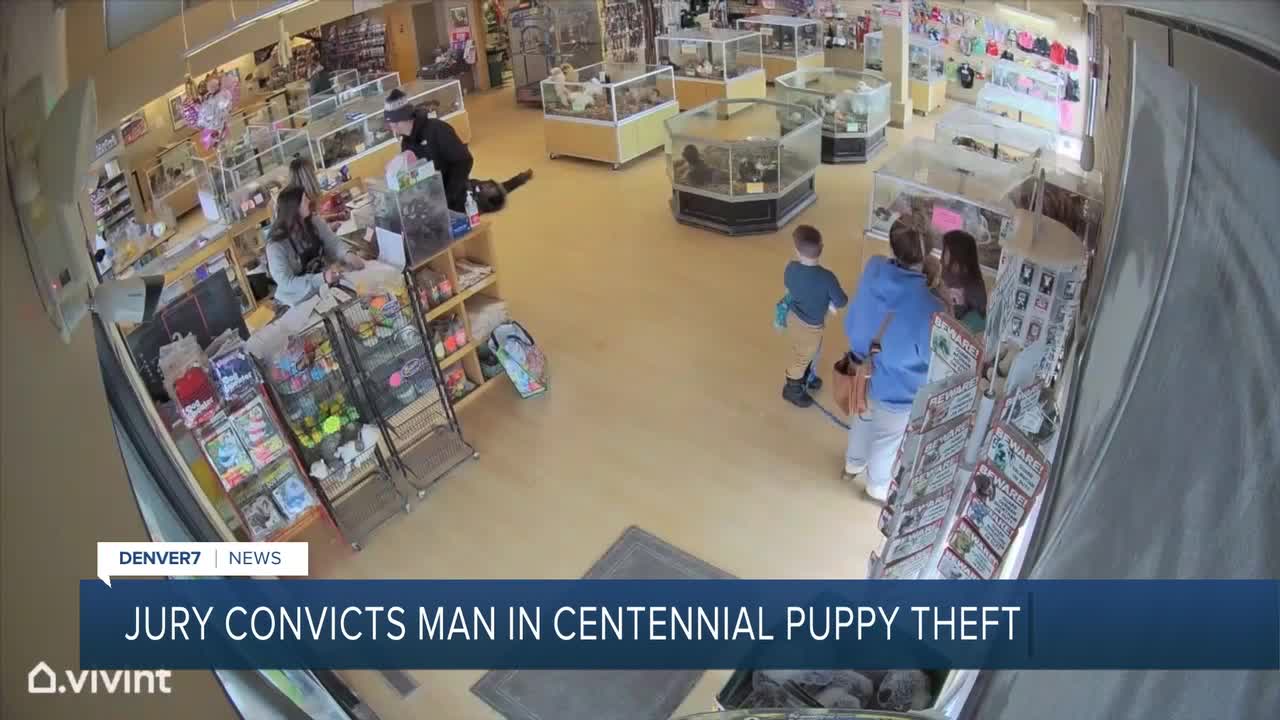 ARAPAHOE COUNTY, Colo. — A jury has convicted a 33-year-old man on charges related to his role in the theft of two puppies from a store in Centennial.
