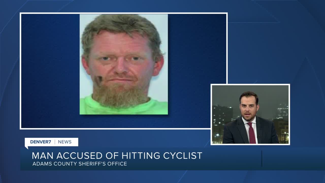ADAMS COUNTY, Colo. — The Adams County Sheriff's Office is asking for help finding a man accused of intentionally running over a bicyclist with his truck on May 10.
