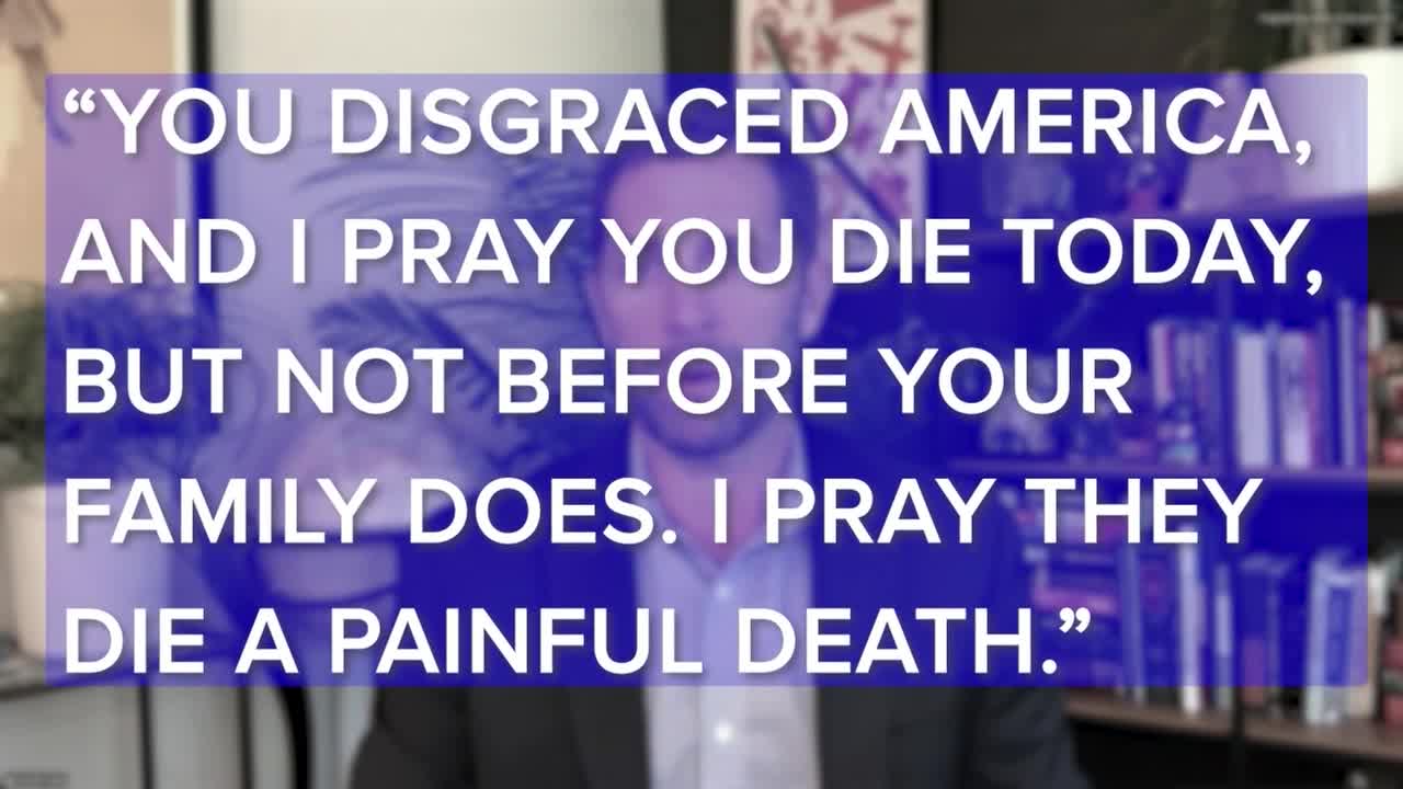 In one of them, a person says in an audio recording, “You disgraced America, and I pray you die today, but not before your family does. I pray they die a painful death.”