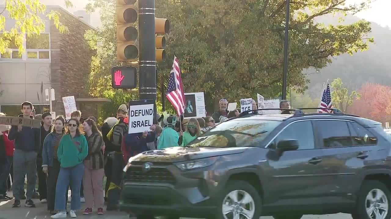 The Boulder demonstration began with a rally at the Glen Huntington Bandshell before moving to sidewalks along Broadway Street in downtown Boulder.