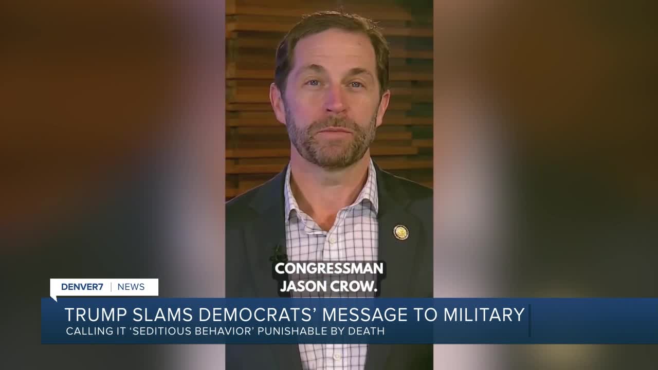 In a joint statement in response to Trump's Truth Social posts, the six Democratic lawmakers who appeared in the video — including Rep. Jason Crow, who represents Colorado's 6th Congressional District — said they swore an oath to protect and defend the Constitution of the United States, an oath they intended to keep.