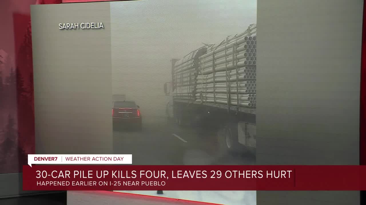 PUEBLO COUNTY, Colo. — A man injured in Tuesday’s massive pileup on Interstate 25 south of Pueblo has died, troopers with the Colorado State Patrol said Wednesday, bringing the number of dead from the crash to five.