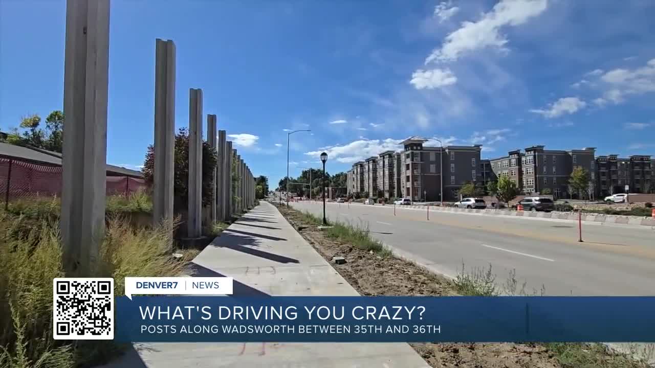 WHEAT RIDGE, Colo. — Alissa from Denver writes, “What’s driving you crazy? What are these posts? In the what feels like 15 years of construction on Wadsworth between 35 and 36th, these popped up over a year ago but nothing has been done other than these posts. Would love to know what these are.”