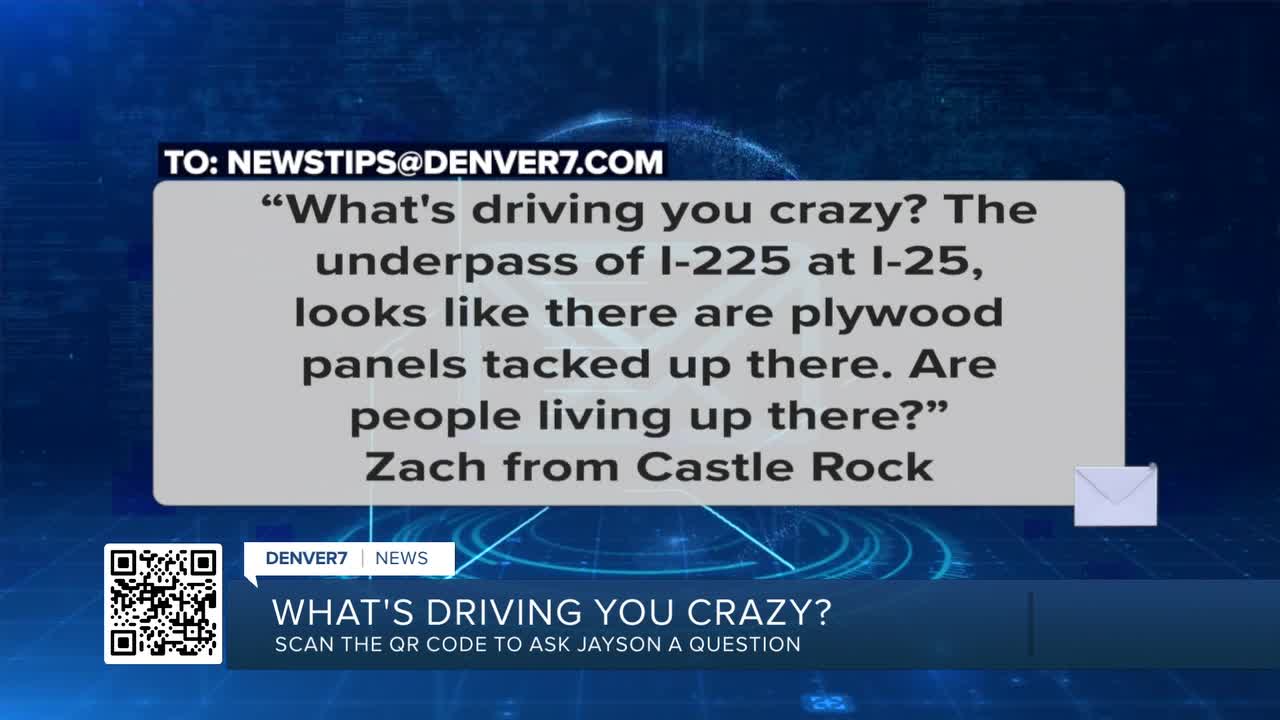 DENVER — Zach from Castle Rock writes, “What's driving you crazy? The underpass of I-225 at I-25, looks like there are plywood panels tacked up there. Are people living up there?”