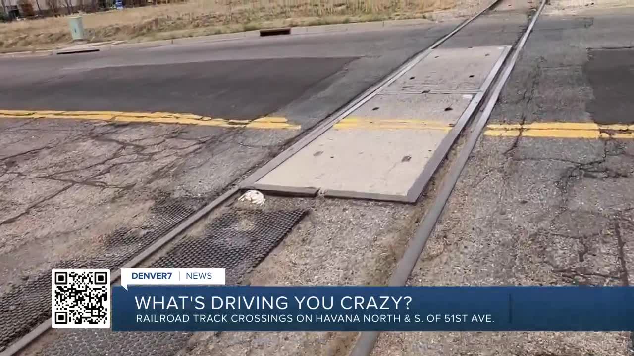 DENVER — Daniel from Denver writes, “What's driving you crazy? Railroad track crossings on Havana St. (both directions) North and South of E 51st. Ave. Union Pacific is a complete dumpster fire who will never do anything. Both rail lines are never used and likely abandoned. The crossings are in horrible condition. The City and County of Denver refuses to repair numerous major potholes that are outside of the track and are within their legal responsibility.”