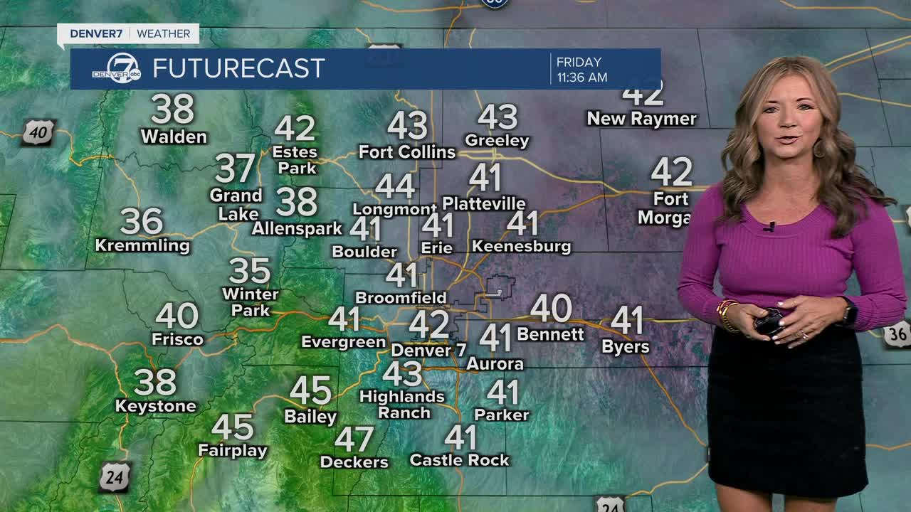 DENVER — It will be a cool end to October, but we'll see some dry conditions Friday night for all of your little trick-or-treaters. A cold front rolling through the region ushered in some cooler air and we'll see highs in the upper 40s to low 50s by Friday afternoon. That's about 10 degrees below normal.