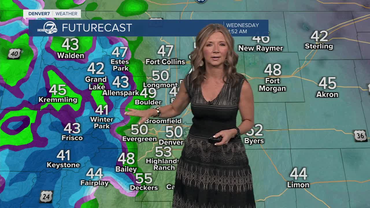 DENVER — It will be a cool and wet start to April as a storm rolls through the region. You'll find dry roads for the morning commute, but rain will develop for Wednesday night's commute and temperatures will be a few degrees cooler than normal!