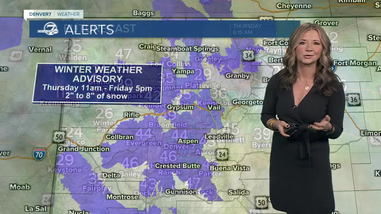 A winter weather advisory goes into effect for the mountains west of the Continental Divide by late morning. We'll see around 2 to 8 inches of snow in the mountains by Friday afternoon, with some slightly heavier totals along the Park Range.
