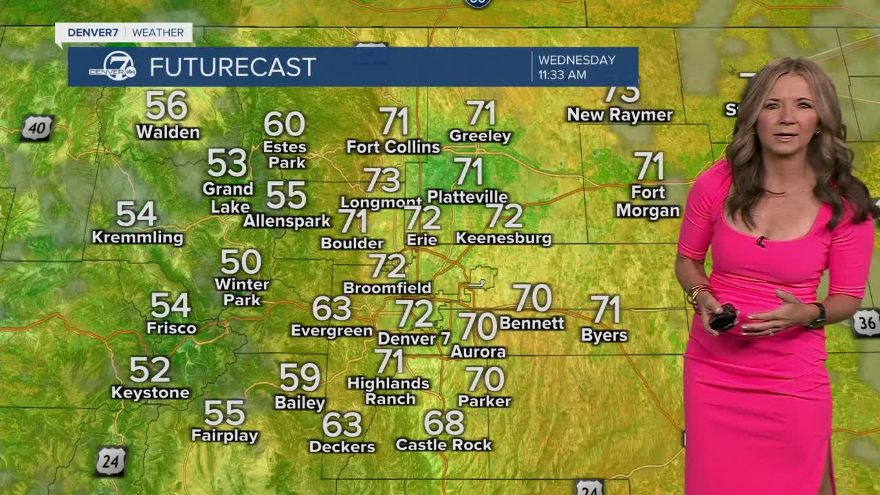This warmer and drier weather is due to a ridge of high pressure that's taking hold over Colorado. We'll see mostly sunny skies and highs in the low to mid 80s Wednesday through Friday. The mountains will see more sunshine and temperatures in the 60s to low 70s.