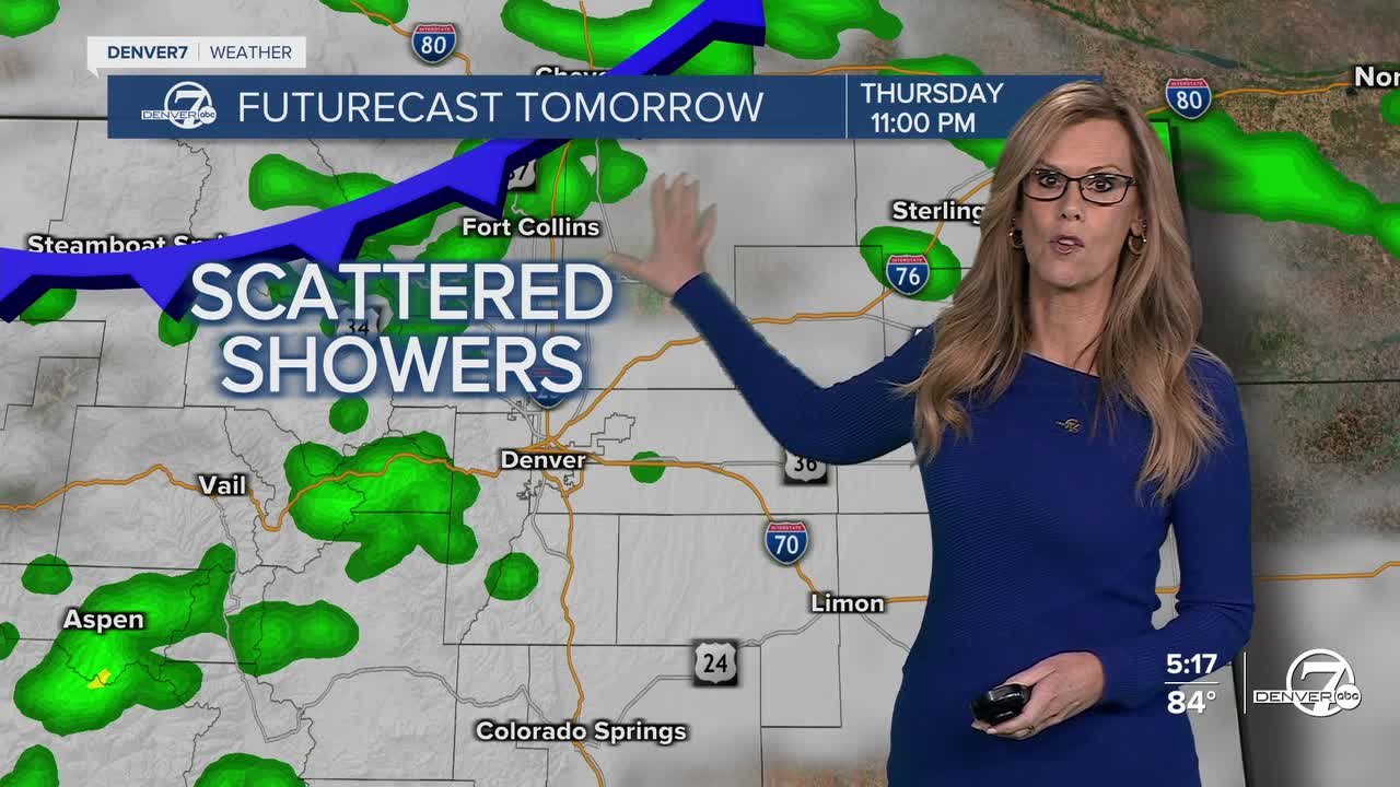 Thursday is shaping up to be warm and breezy again. As an upper-level weather system moves through the northern Plains, winds over Colorado will shift to more of a northwesterly direction. That means we’ll get some warming from downsloping winds, with afternoon highs climbing into the upper 80s and even low 90s in some spots. It’ll be dry and sunny for most of the day. Into the evening, a cold front will push through the area, and that could bring some scattered showers or a few gusty storms by evening.
