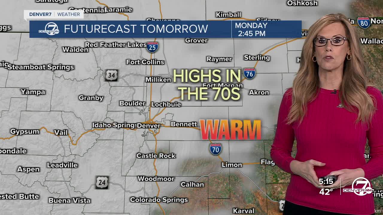 DENVER — Tonight will stay dry and mild across the area as light northerly winds ease and skies remain mostly clear. Temperatures will stay above normal for early November, and this quiet weather pattern looks to continue into the start of this week. No rain or snow is expected tonight or Monday, and the air will stay quite dry.