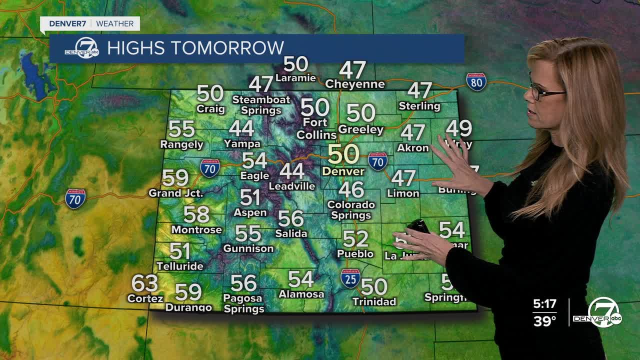 DENVER — Tonight will be calm and cold after a windy afternoon. The strong gusts from earlier will die down overnight, and skies will stay clear. Temperatures will drop quickly, with some spots like Greeley and Limon falling into the teens by early morning.