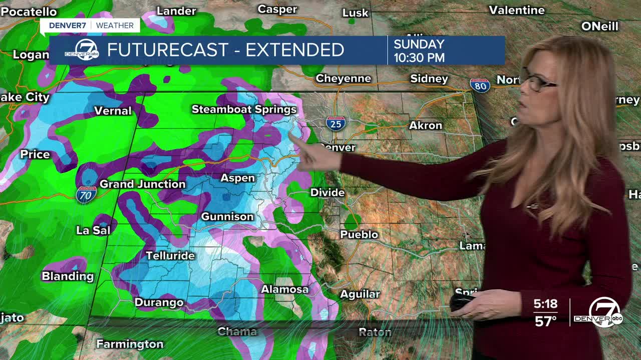 Late Sunday into early Monday, a weak storm system will move in and bring mainly light snow to the mountains. Most of the accumulating snow will fall in the northern mountain ranges, especially closer to the Wyoming border, where a few spots could see several inches. Farther south along the I-70 corridor and Summit County, snowfall amounts will likely stay on the light side. Even so, anyone traveling over the higher passes Sunday night should plan for slick spots as temperatures drop into the 20s.