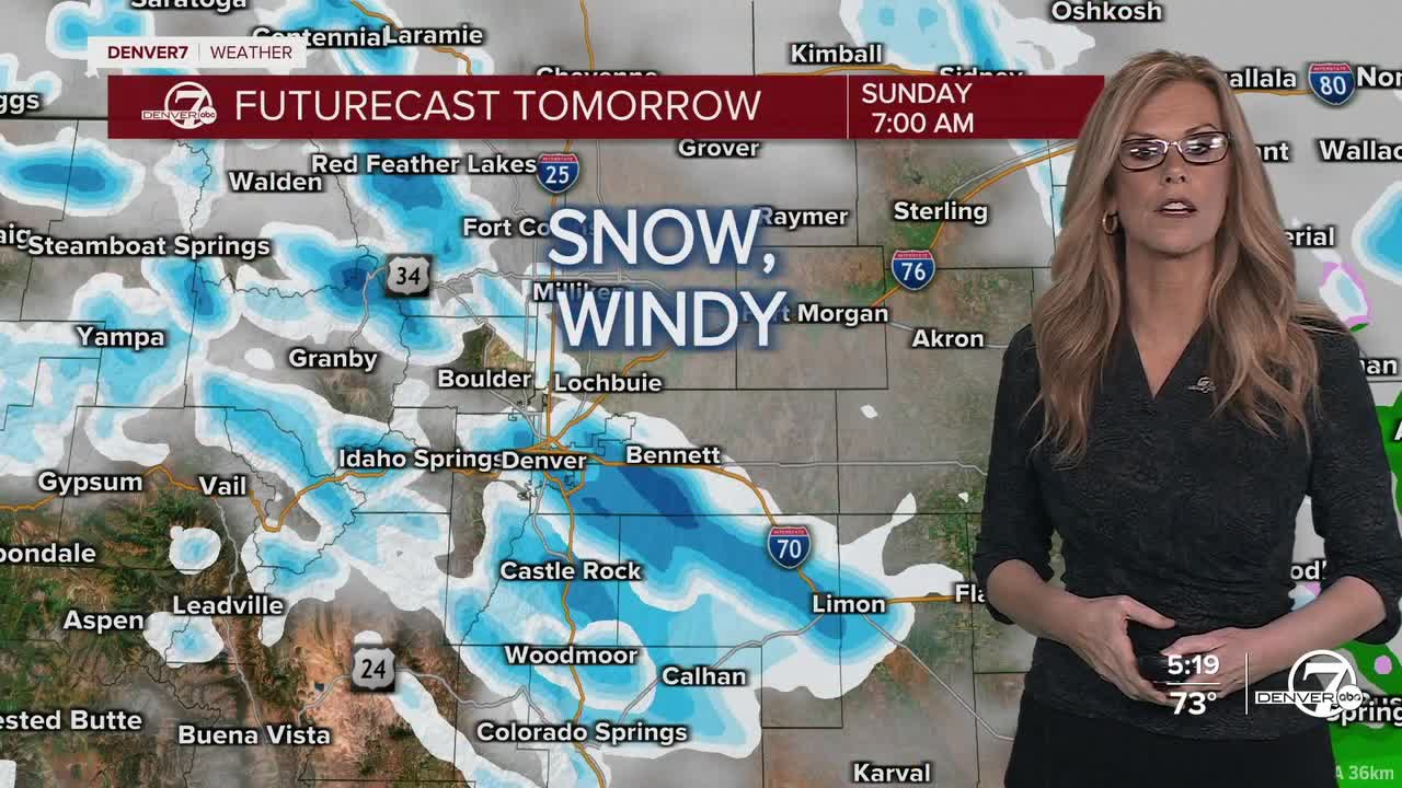 DENVER — Starting tonight, a strong cold front will move through the area late this evening and overnight. As it arrives, winds will shift to the north and remain very strong, with gusts around 55 to 65 mph across the plains. Temperatures will drop quickly behind the front, and light precipitation may begin as a rain and snow mix before changing to snow as colder air settles in. With high winds, and temps in the 30s on Sunday- expect temperatures to feel close to 0° on Sunday.