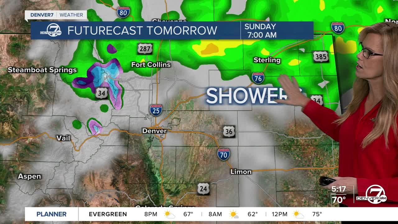 DENVER — Tonight, scattered showers and thunderstorms are expected across northeast Colorado, continuing from activity that began earlier in the evening. Some of these storms could be strong, especially across the northeast plains. Most storms, however, will stay below severe limits. As the evening progresses, the thunderstorms will become more scattered, transitioning to lighter showers overnight as the weather system moves through the region.