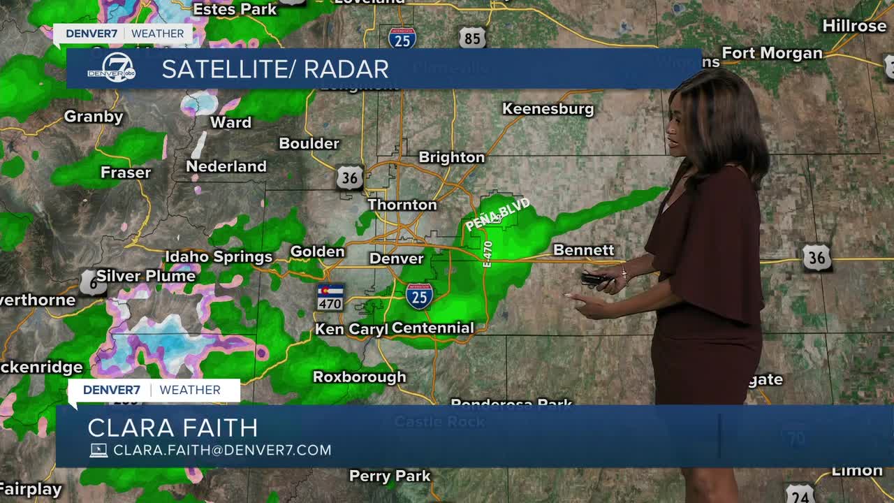 DENVER — Monday evening brings showers across the Interstate 25 corridor and foothills, with a few snowflakes possible over the higher mountain peaks.