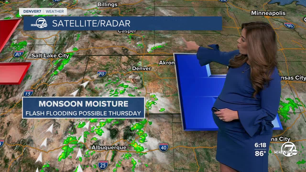 The monsoon moisture make a comeback for much of the Western Slope along with the central and southern mountains Thursday. A Flood Watch is in effect from 6am to midnight Thursday for the potential of flash flooding. Some areas could see one to two inches of rain from slow-moving thunderstorms.