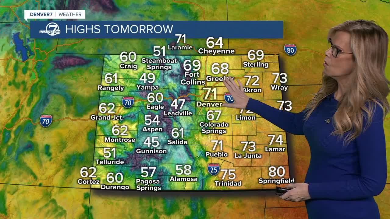 On Monday, very warm weather will be the main story. Downsloping winds and strengthening southwest winds aloft will help push temperatures into the low to mid 70s on the plains, with Denver likely breaking its daily record high of 70 degrees. Winds may become gusty near the foothills during the afternoon, while lower elevations stay breezy at times, and the warm, dry air may lead to elevated fire weather concerns. A Fire Weather Watch is in effect for the foothills on Monday with elevated fire danger.