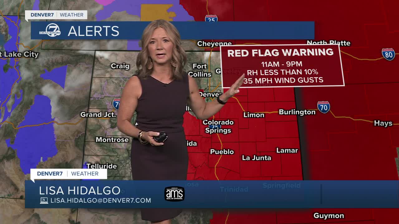We'll see temperatures in the upper 60s by lunch and upper 70s by late Thursday afternoon! It’ll feel dry, though, with humidity dropping quite a bit. Because of that, a number of red flag warnings go into effect at 11 a.m. and cover most of eastern Colorado and the Front Range.