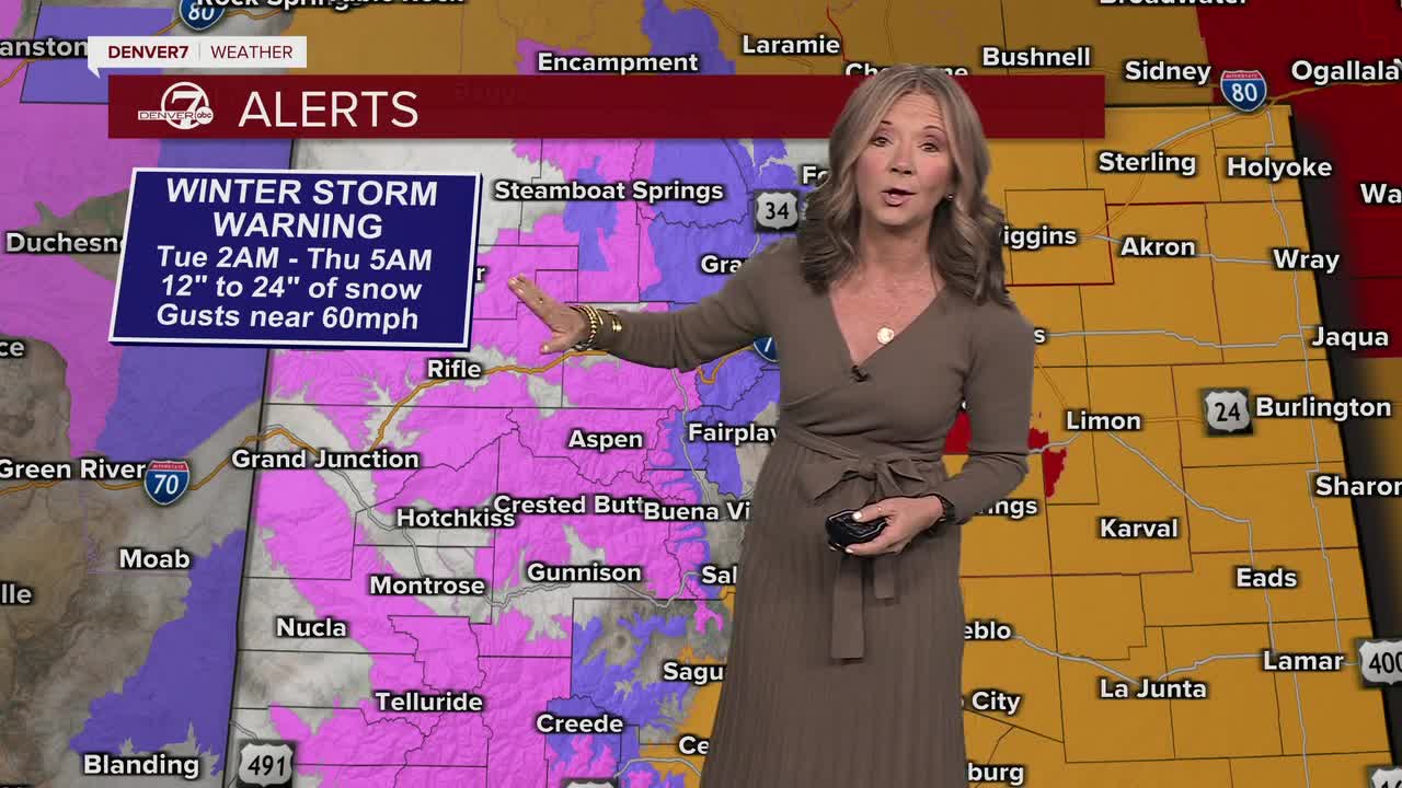 DENVER — A powerful winter storm slams the state Tuesday. We're already starting to see some heavy snow in the mountains and the winds will get even gustier over the next few hours. This will lead to high fire danger across all of eastern Colorado.