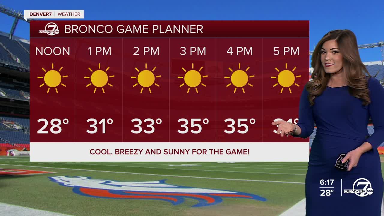We'll have a sunny start to your Saturday in the Denver metro but temperatures remain below-average! Broncos fans, dress in layers if you're tailgating out at Empower Field on Saturday morning. Highs will stay in the mid to upper 30s Saturday afternoon. While the winds won't be quite as strong in the city, they will continue to howl east of I-25.