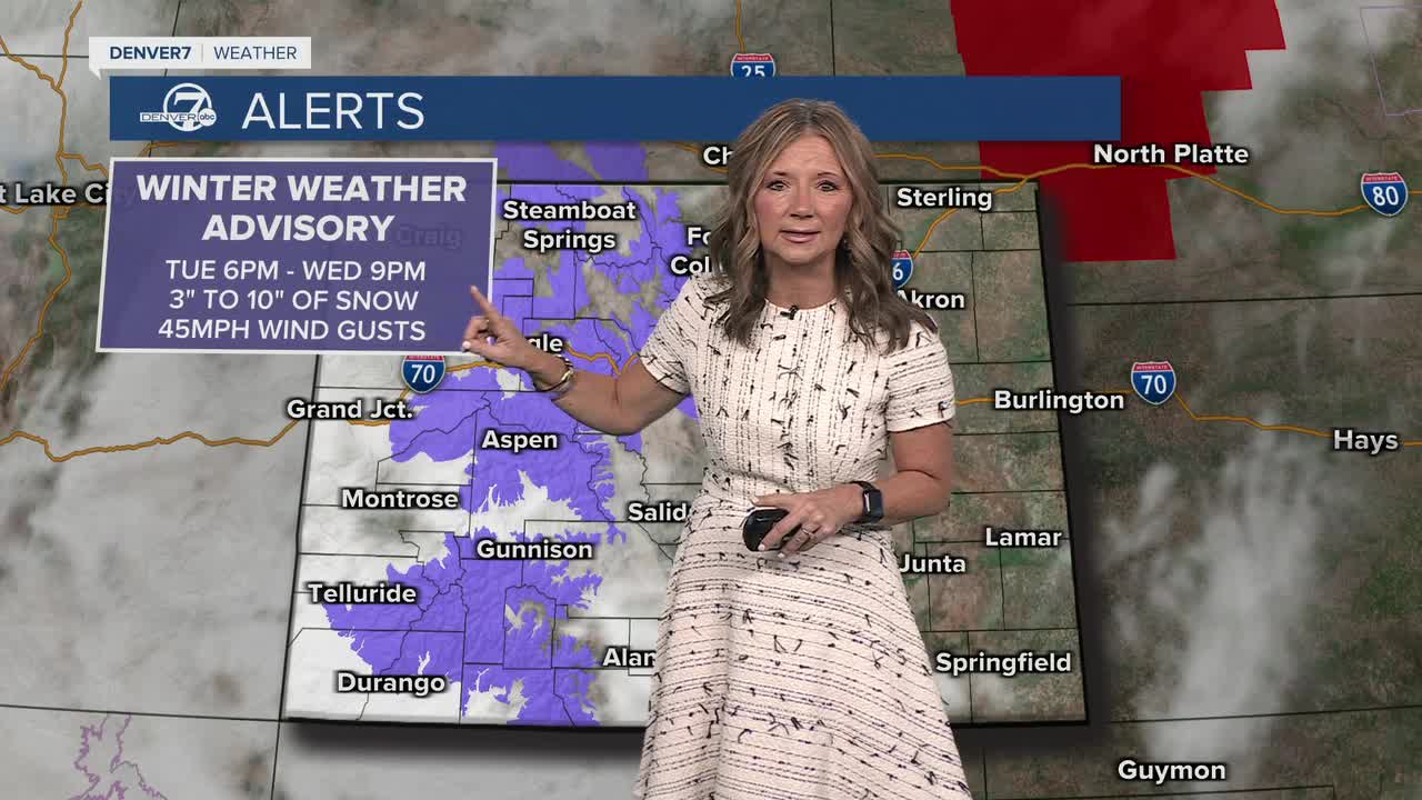 Meanwhile, a winter weather advisory will go into effect Tuesday at 6 p.m. and continue until 9 p.m. Wednesday for much of Colorado's high country. It'll finally feel and look more like winter across the Rockies as mountain towns brace for 6 to 12 inches of much-needed snow.