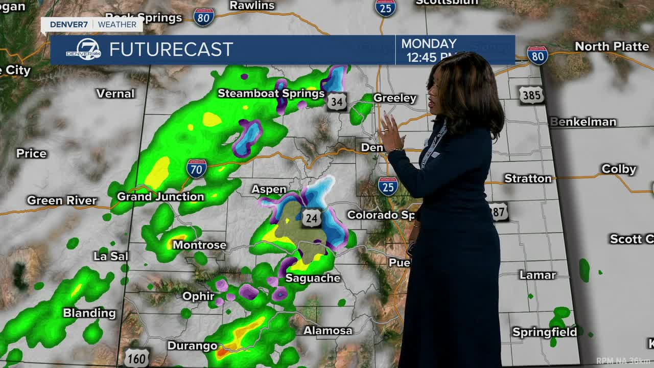That means we could see a few spotty rain or snow showers over Colorado's high country later Monday.