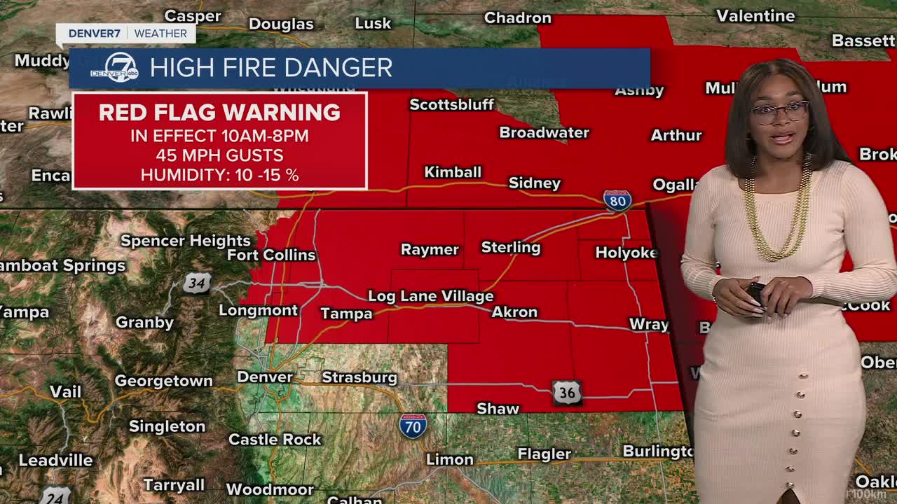 A Red Flag Warning is in effect Tuesday from 10 a.m. to 8 p.m., with a Fire Weather Watch issued as well.