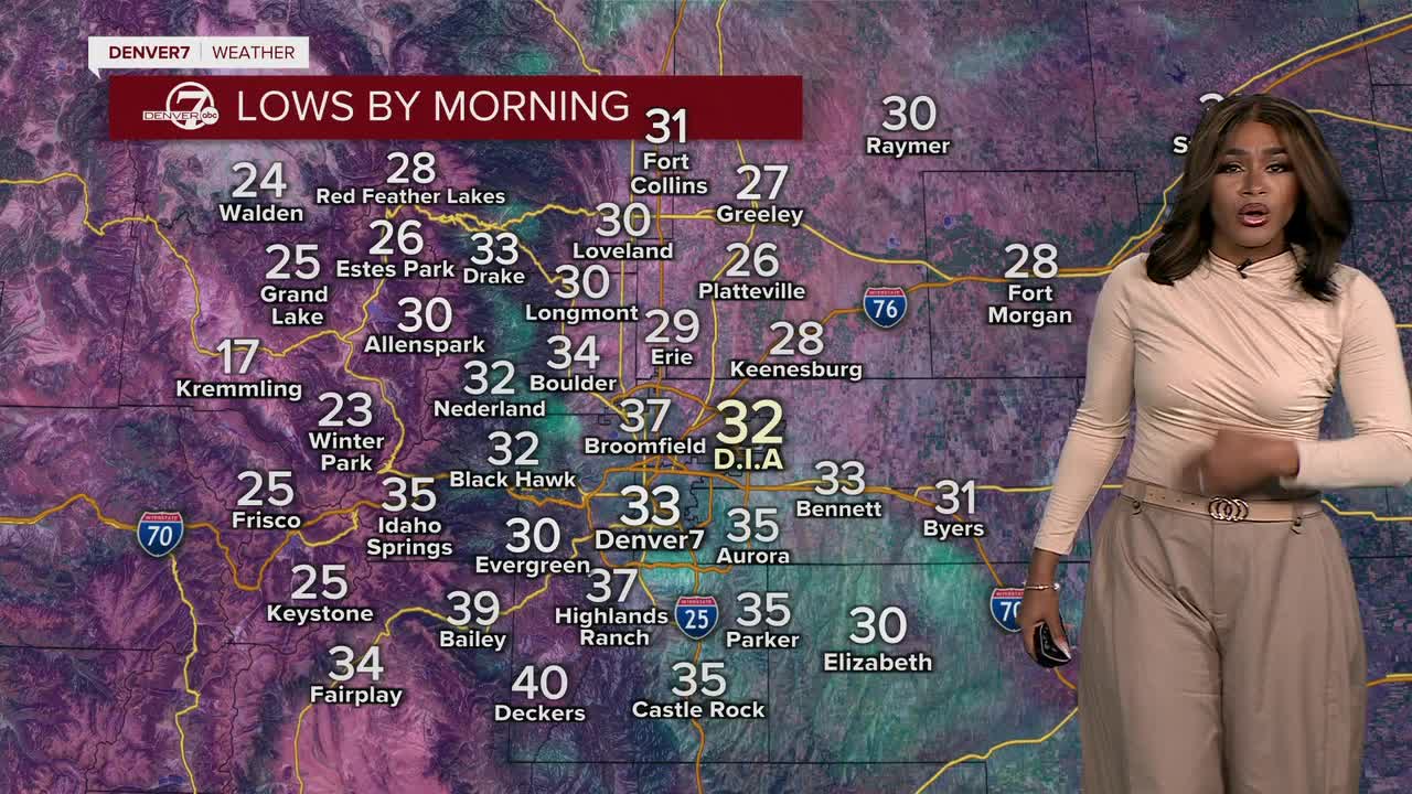 Northwest winds eased up after sunset, but a Freeze Warning is in effect from midnight to 8 a.m. Tuesday for much of the Front Range including Fort Collins, Boulder, Denver, and Castle Rock.