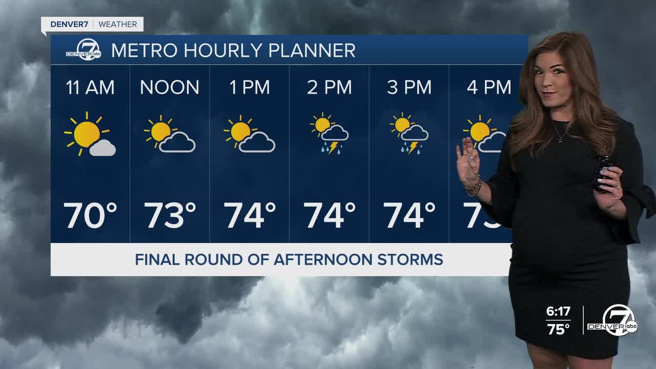 We're in for one more day of afternoon storms across the Denver metro area. Look for a few to zip through between 2pm and 7pm. Temperatures will hold in the mid to upper 70s Saturday afternoon.