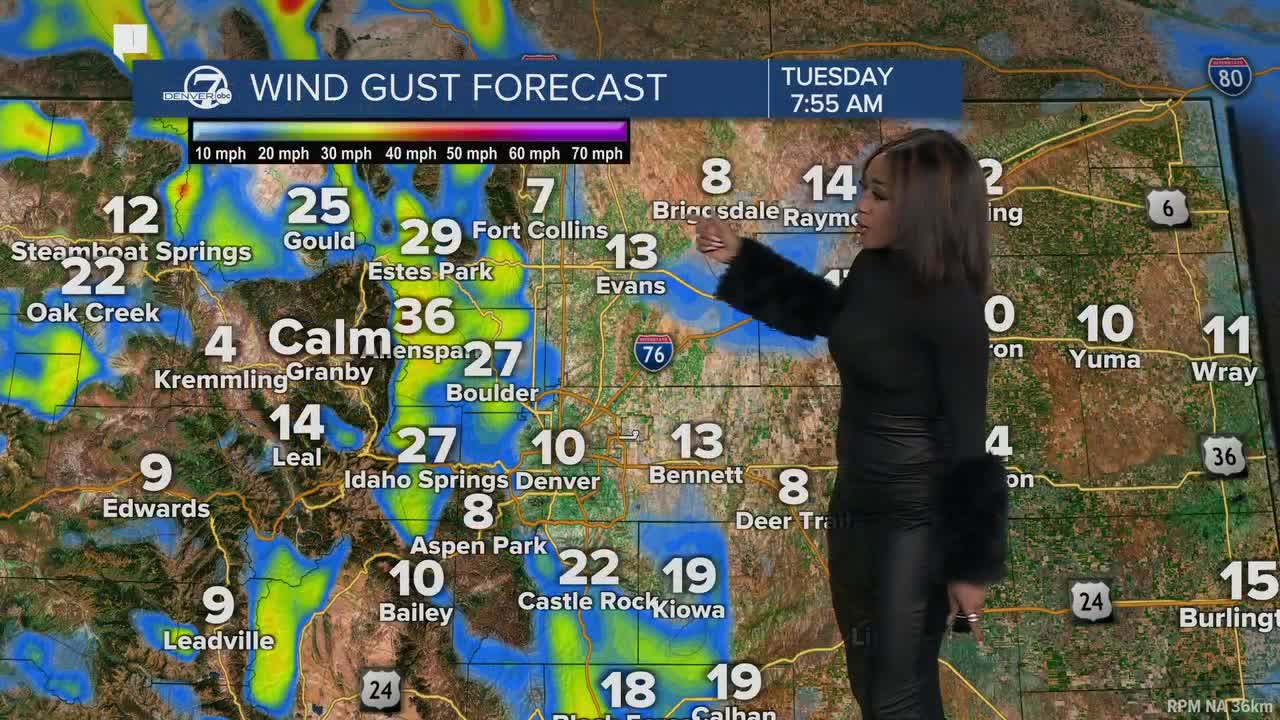 Tuesday night brings a few changes as a cold front move into Colorado. Behind the front, north winds could gust up to 50 mph, especially across foothills. There is also a chance for snow showers in the northern and central mountains overnight.
