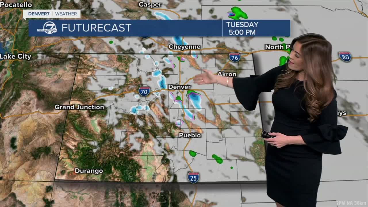 DENVER — After a gorgeous and warm weekend, temperatures will cool just a bit heading into Tuesday as a fast-moving storm moves into the state.
