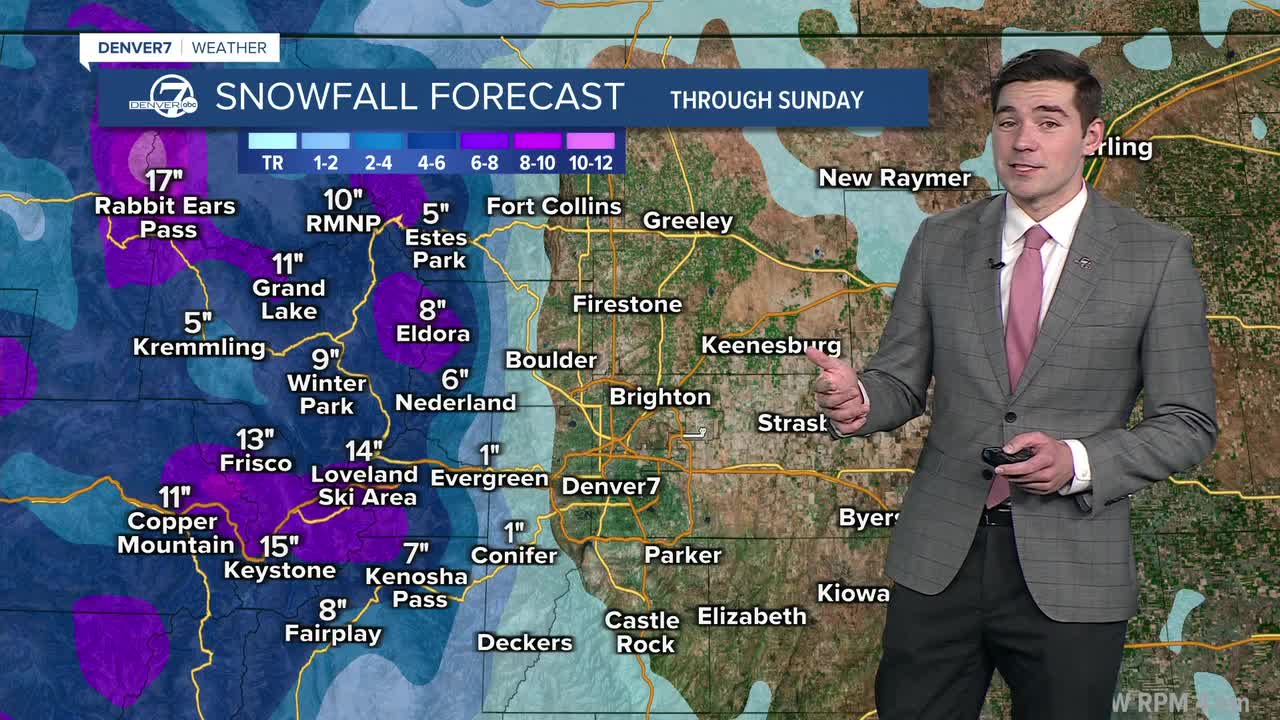 The I-70 corridor should generally expect 7-15 inches of snow, while some spots in the highest elevations could see up to 20 inches.