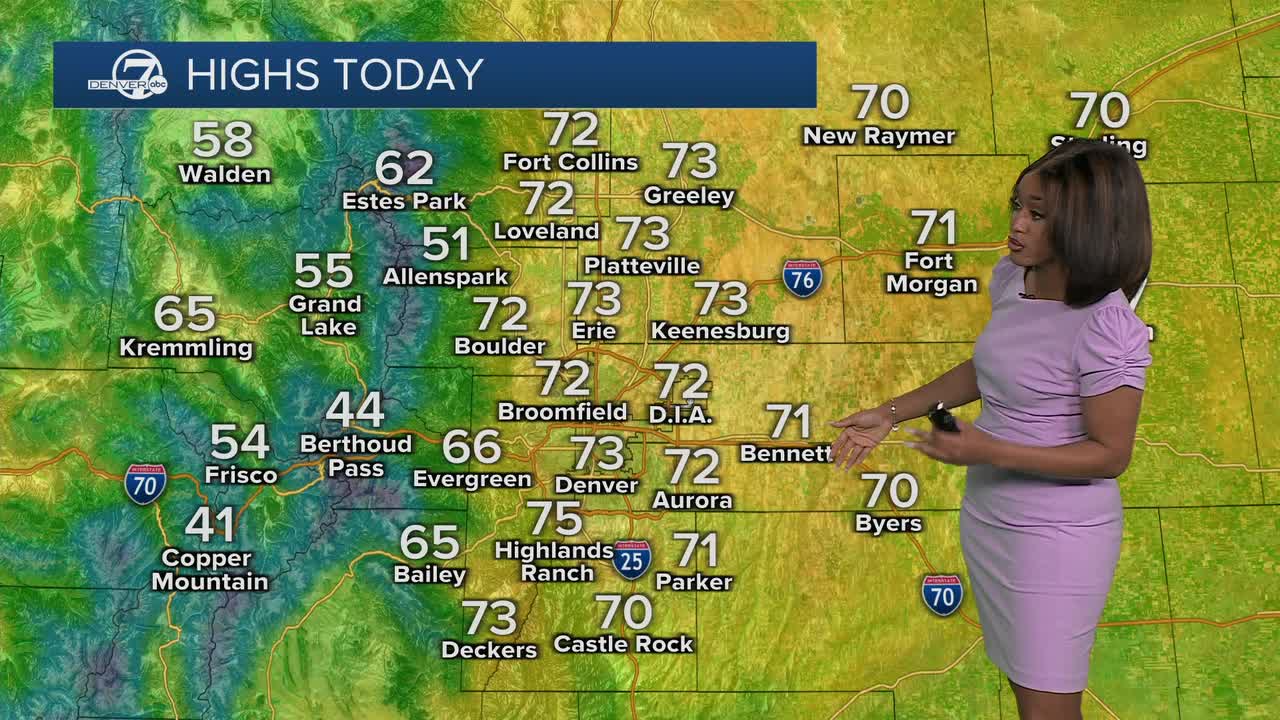 DENVER — It is shaping up to be a quiet and mild Monday afternoon with highs climbing into the low 70s.