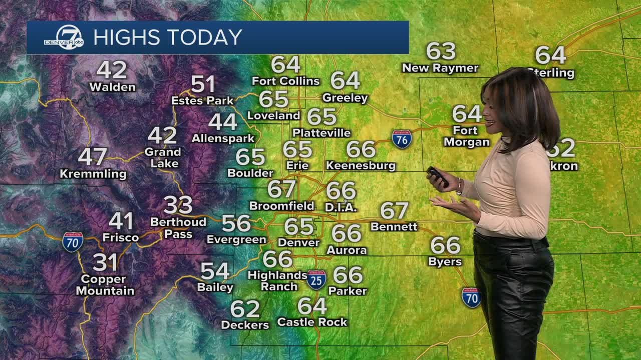 Monday brings mild and dry conditions under a ridge of high pressure. Today's high will climb into the mid-60s along the Front Range and eastern plains.