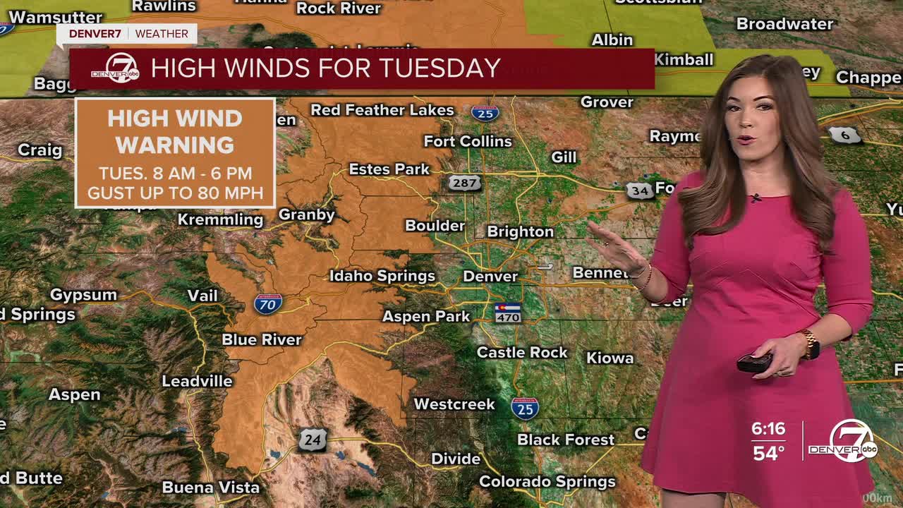 DENVER — Here we go again! Fierce winds will whip across the Front Range mountains and foothills Tuesday, while the Denver metro sees high fire danger and near record high temperatures in the lower 70s.