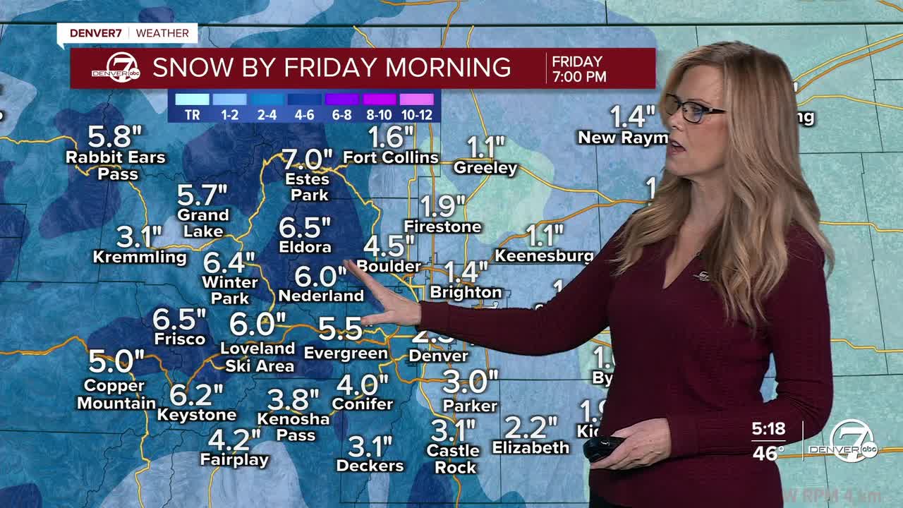 DENVER — Snow returns to the mountains tonight and continues into Thursday as the first of two systems moves through. Conditions will steadily deteriorate overnight, with snow becoming more widespread by Thursday morning. Winter Weather Advisories are in effect for the mountains through Friday morning, and travel in the high country will become slick at times, especially overnight and during the day Thursday.